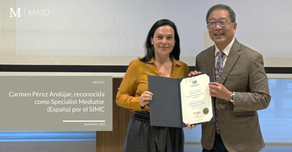 Desde MAIO Legal, damos la enhorabuena a nuestra socia por este hito y agradecemos al SIMC la organización de un programa que refuerza el papel de la mediación en el ámbito internacional.