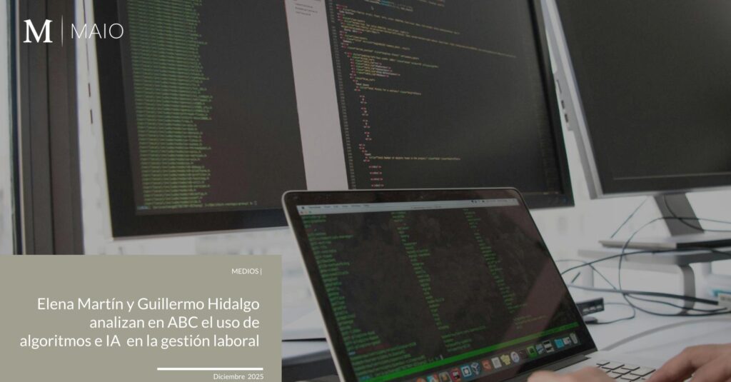 El diario ABC publica un reportaje sobre la utilización de algoritmos y sistemas de inteligencia artificial en las relaciones laborales, en el que intervienen dos profesionales de MAIO Legal: Elena Martín, asociada senior del área Laboral, y Guillermo Hidalgo, counsel y responsable de Ciberderecho.